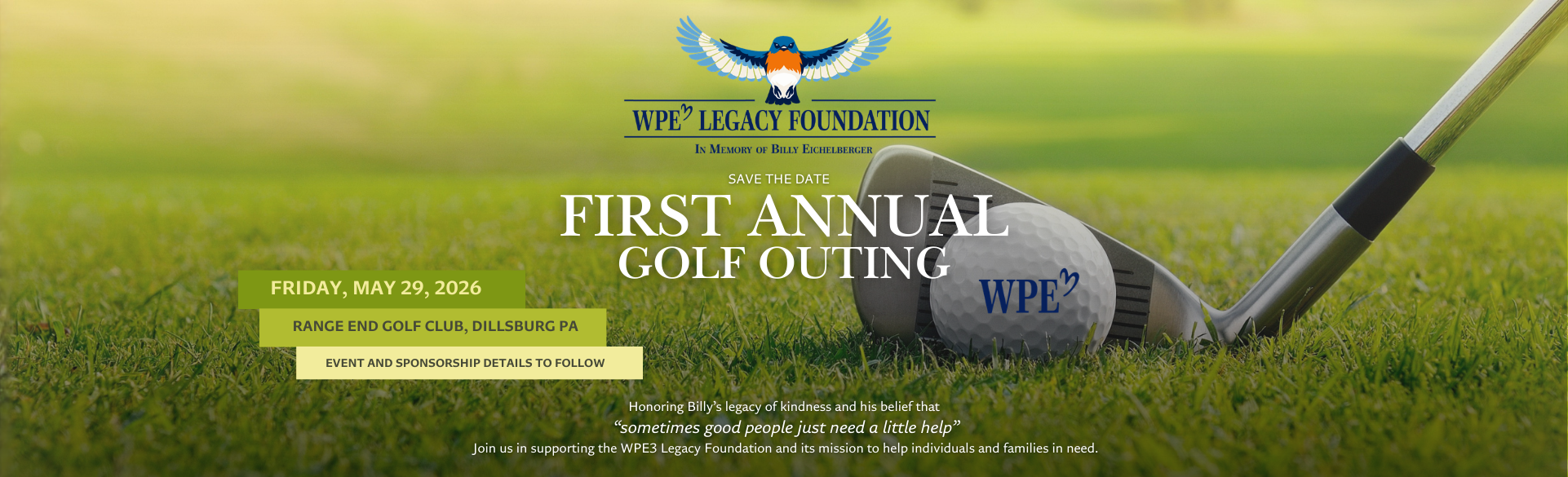 The WPE3 Legacy Foundation was created in the spirit of Billy’s belief that “sometimes good people just need a little help.” Billy lived his life with kindness, generosity, and a genuine concern for others before himself. This event is a celebration of Billy’s life, bringing together friends, family, and community to share laughter, friendship, and memories while continuing his legacy of helping people in need. The WPE3 Legacy Foundation Golf Outing is more than a golf event - it is an opportunity to carry forward Billy’s heart for helping others. By supporting or participating in this event, you are helping provide assistance to individuals and families facing difficult times, just as Billy believed we should. The goal is simple - to honor Billy by helping people in need. 100% of net proceeds will be used to assist individuals and families in need. |